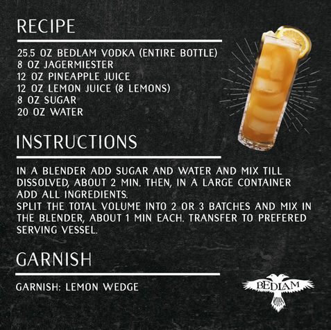 This sweet vodka is distilled from rice and goes down extremely smooth. Everything about Bedlam Vodka is directed towards creating disruption in the spirits industry. From its unique grain & flavor - to its detailed bottle and their ‘Double Headed Raven’ logo.